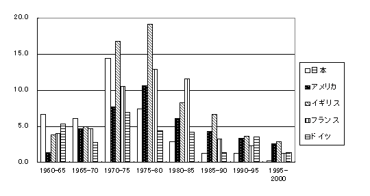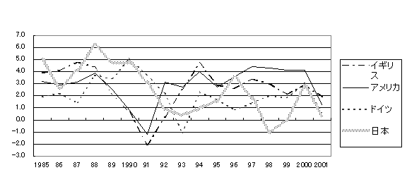 第1図 経済成長率の国際比較 (日本銀行統計)